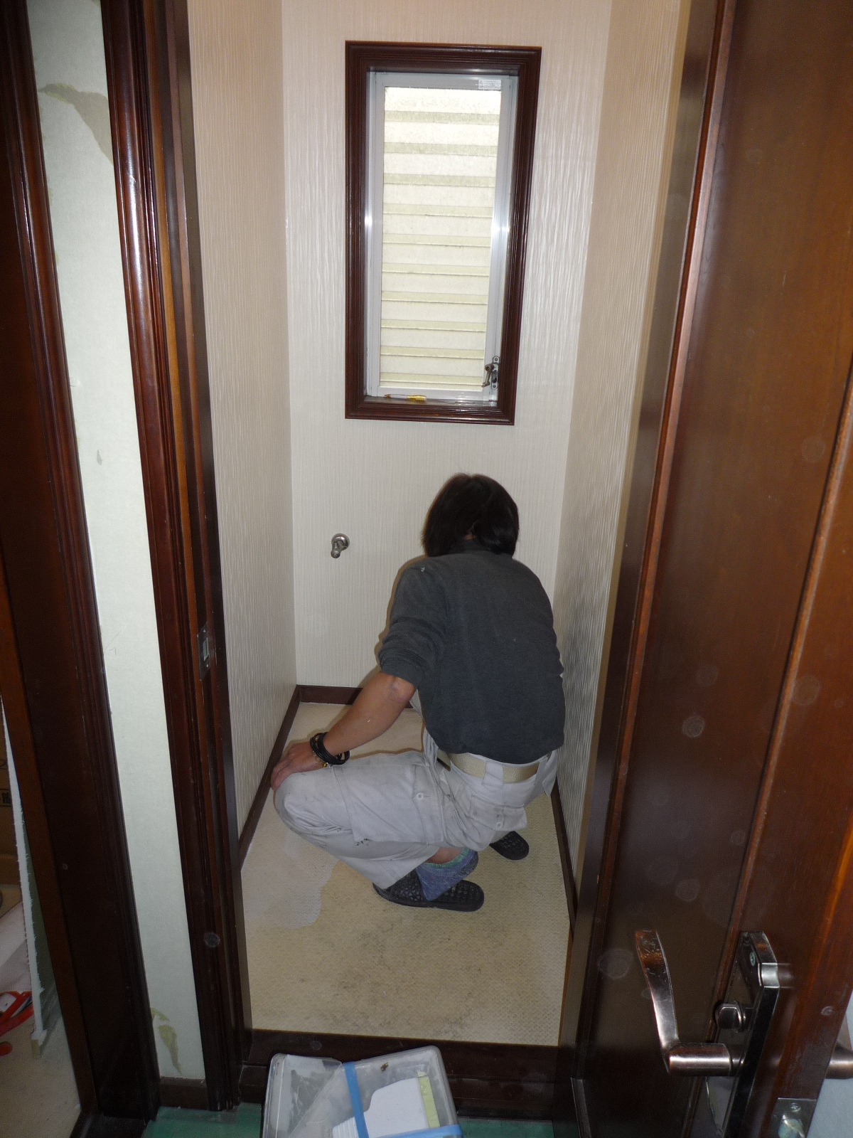 既設便器を撤去し、クロスとCFシートを張り替えます。新しい便器を取付けます。
