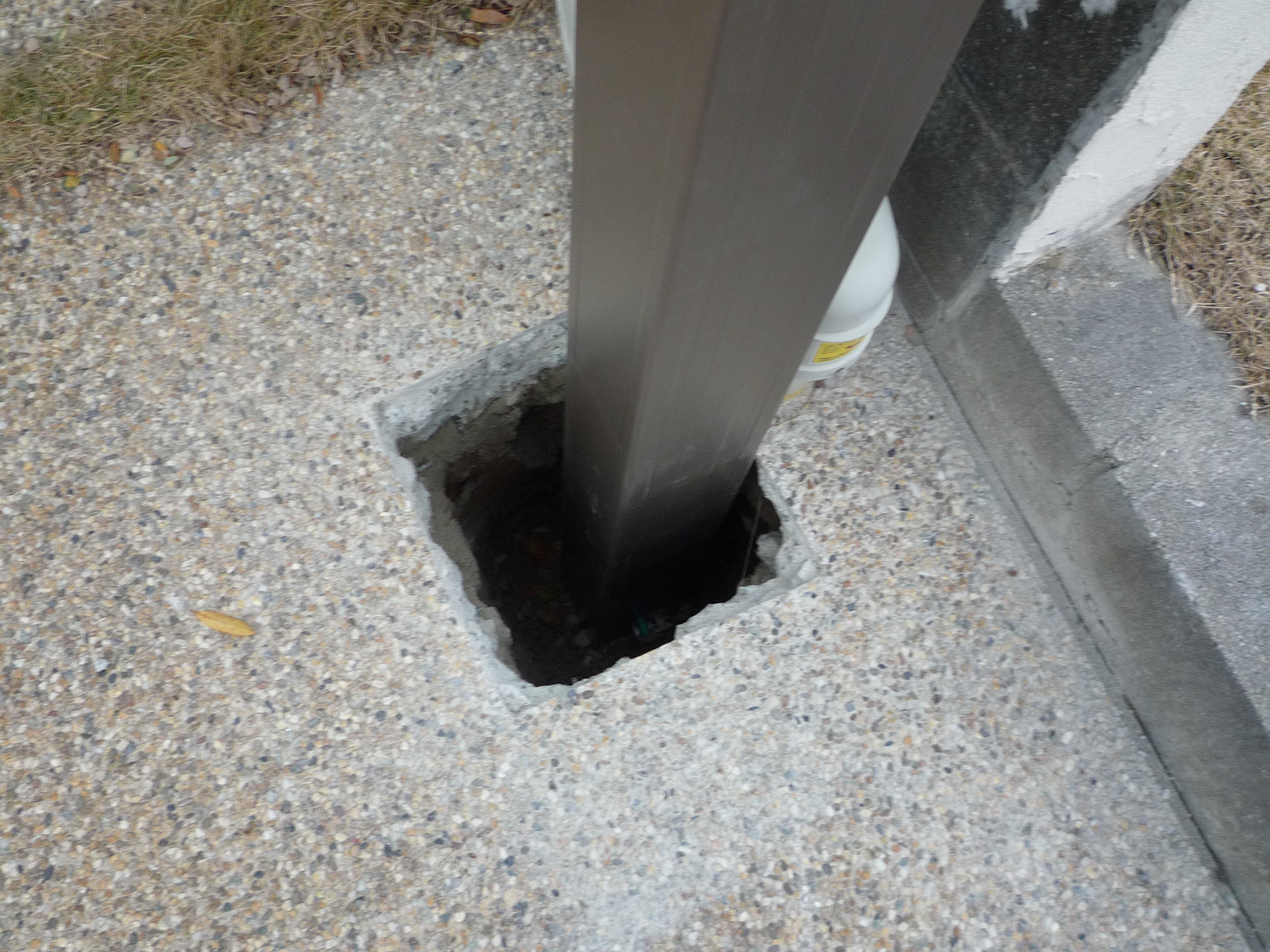 4本の柱の建つ位置を確認します。土間のコンクリートのカッター(切れ込み)を入れ掘っていきます。柱を建てて屋根部分を組み立てていきます。柱部分を建てた掘削部分をコンクリートで固定します。次に芝生を剥ぎとり、地ならしをして化粧砂利を敷いて完成です。