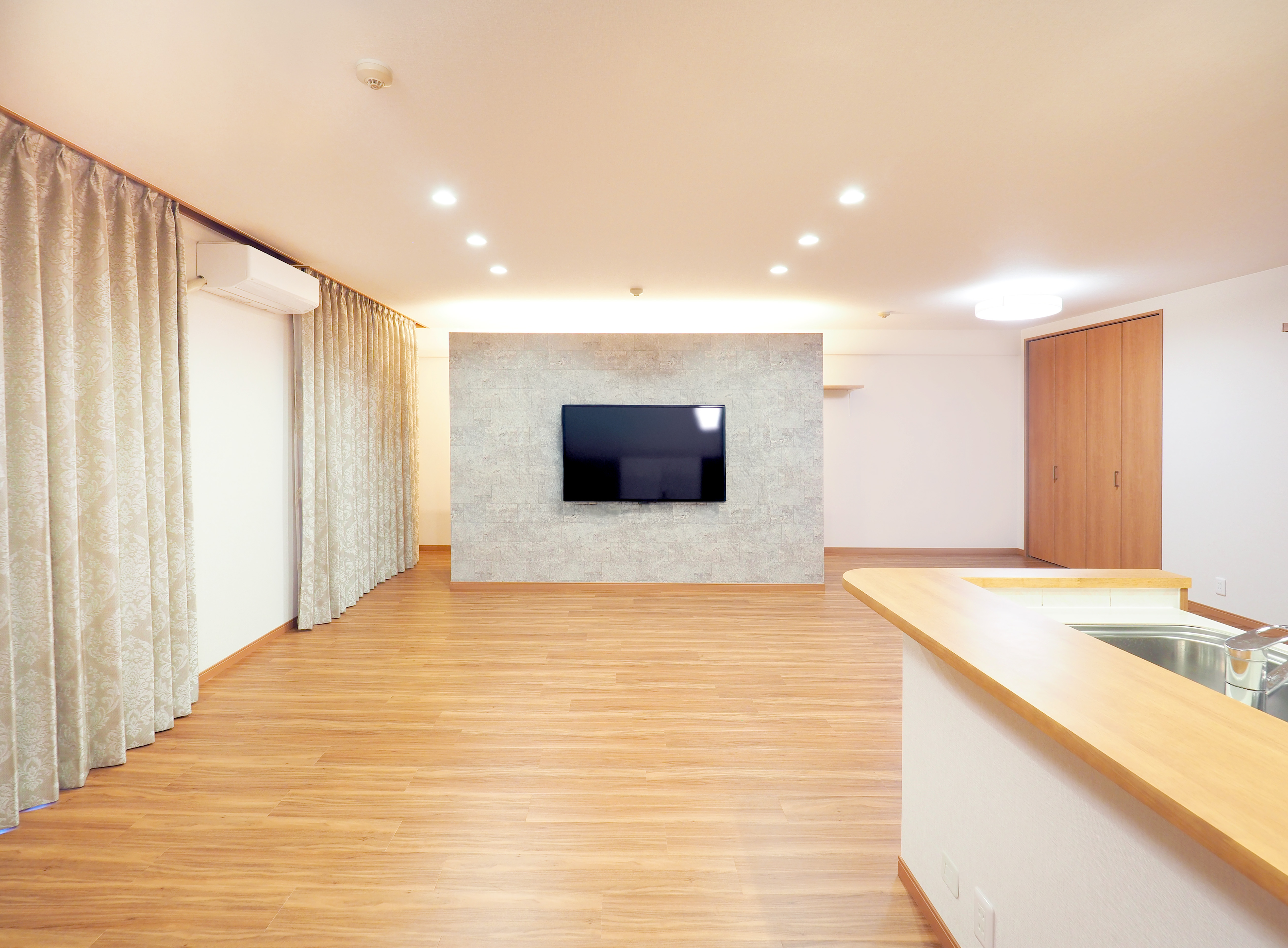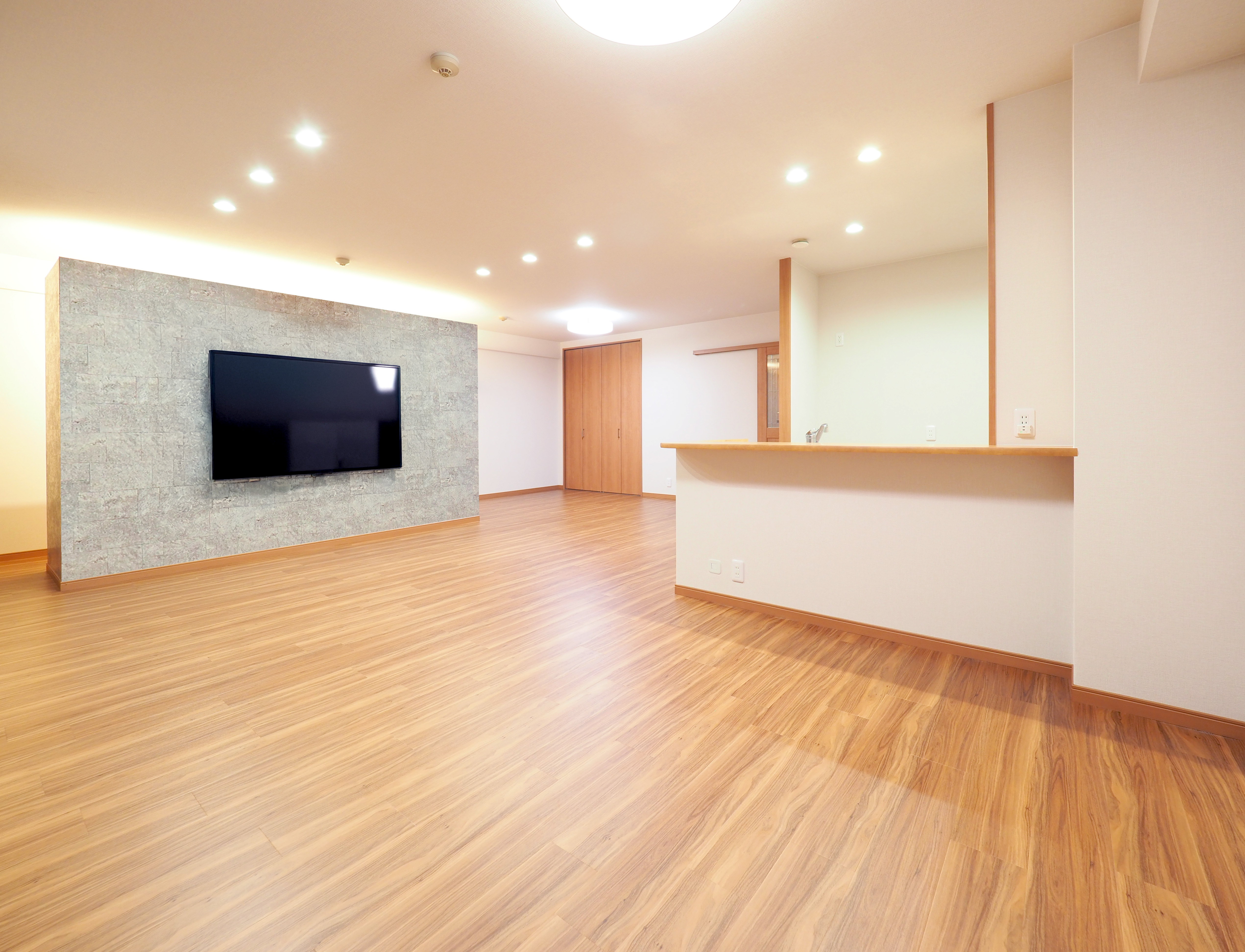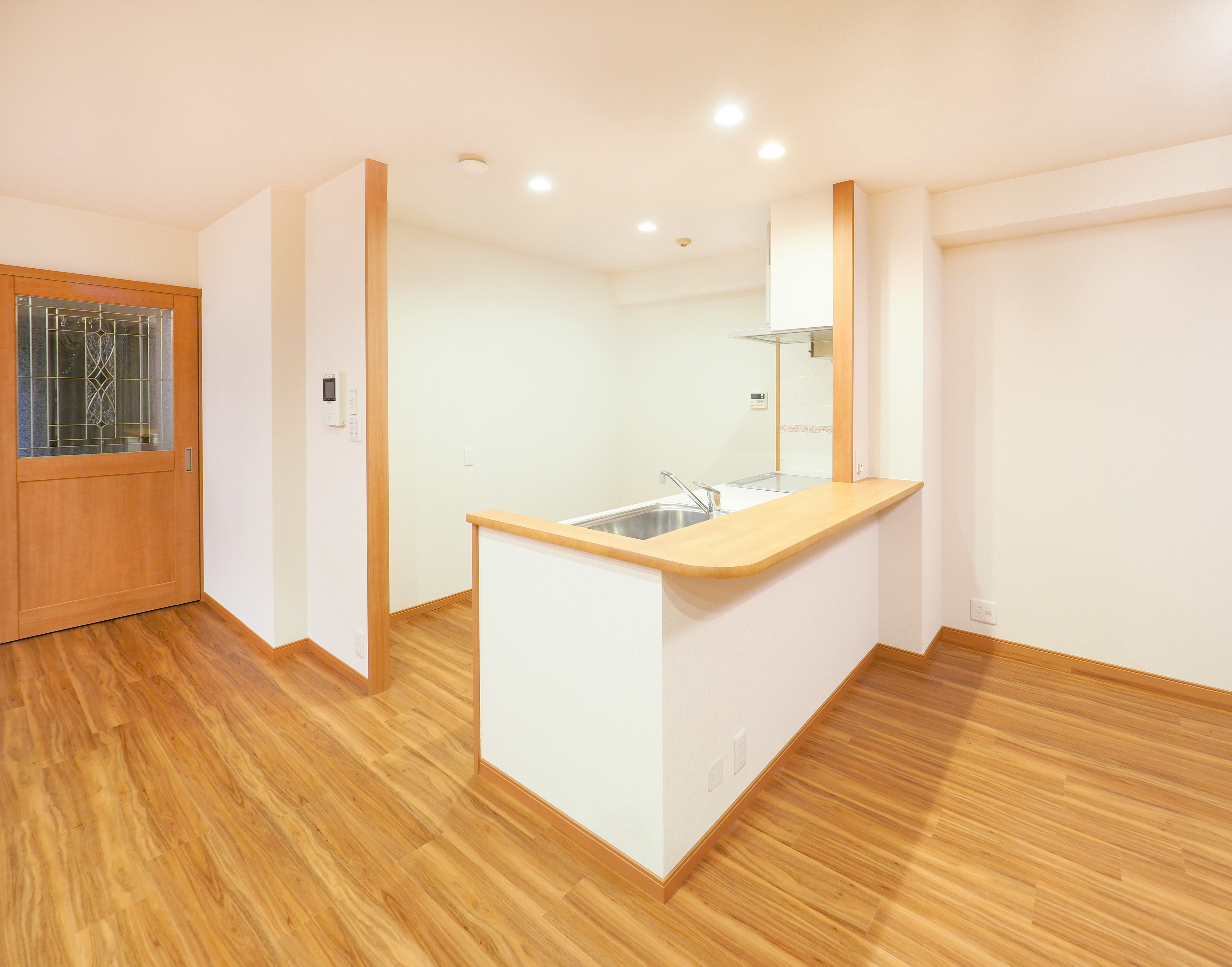 間仕切りを撤去して部屋数を減らし、開きドアをすべて引戸に取替えました。